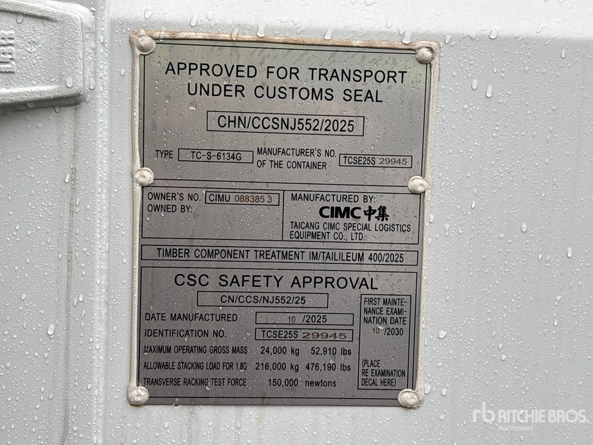 Un empleado cualificado de Ritchie Bros. ha recopilado información detallada del equipo y realizado las pruebas de funcionamiento de los componentes principales de este activo. Tú o tu representante también podéis inspeccionar cualquier artículo in situ durante los días de inspección de equipos indicados.