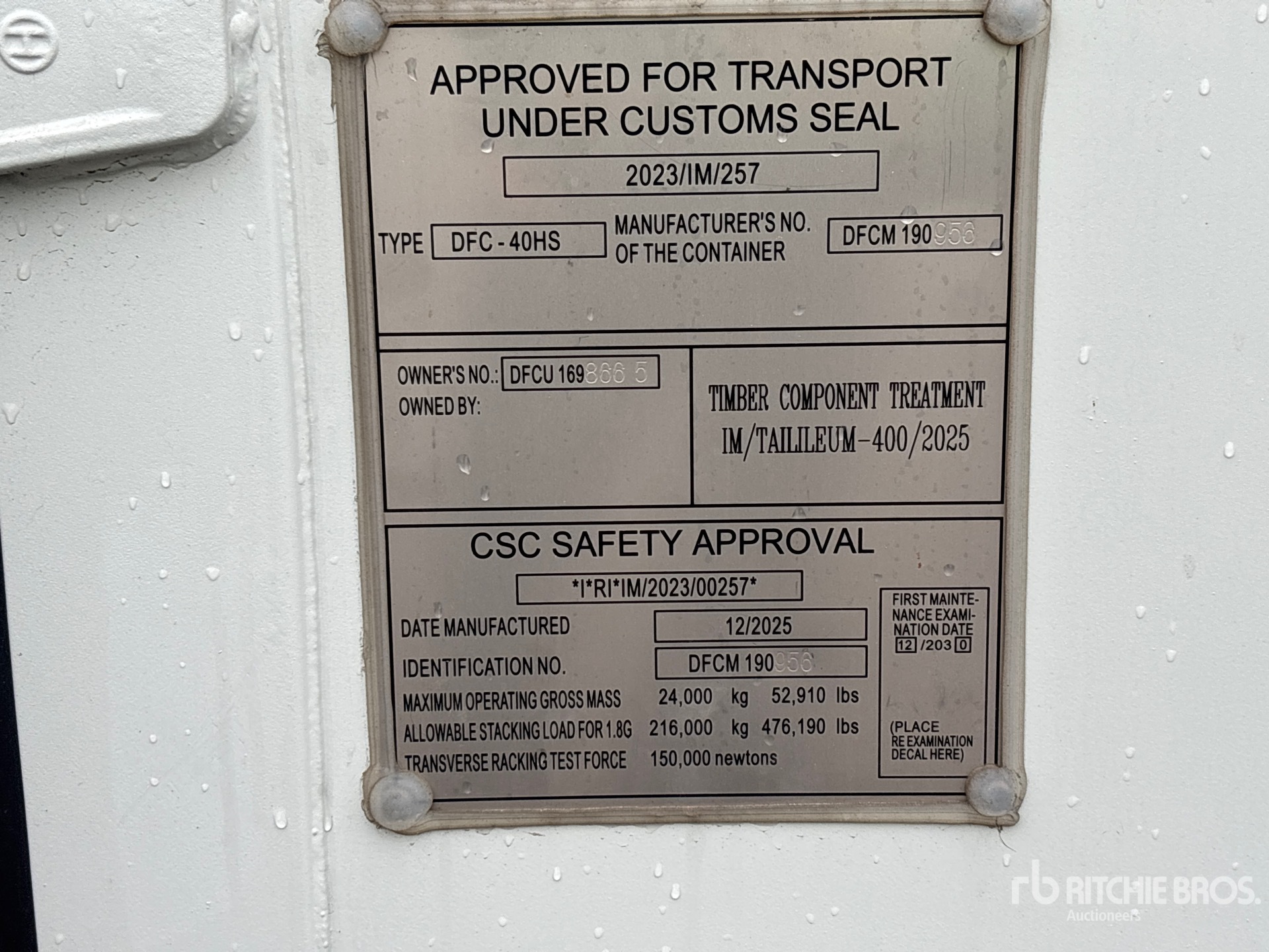 Un empleado cualificado de Ritchie Bros. ha recopilado información detallada del equipo y realizado las pruebas de funcionamiento de los componentes principales de este activo. Tú o tu representante también podéis inspeccionar cualquier artículo in situ durante los días de inspección de equipos indicados.
