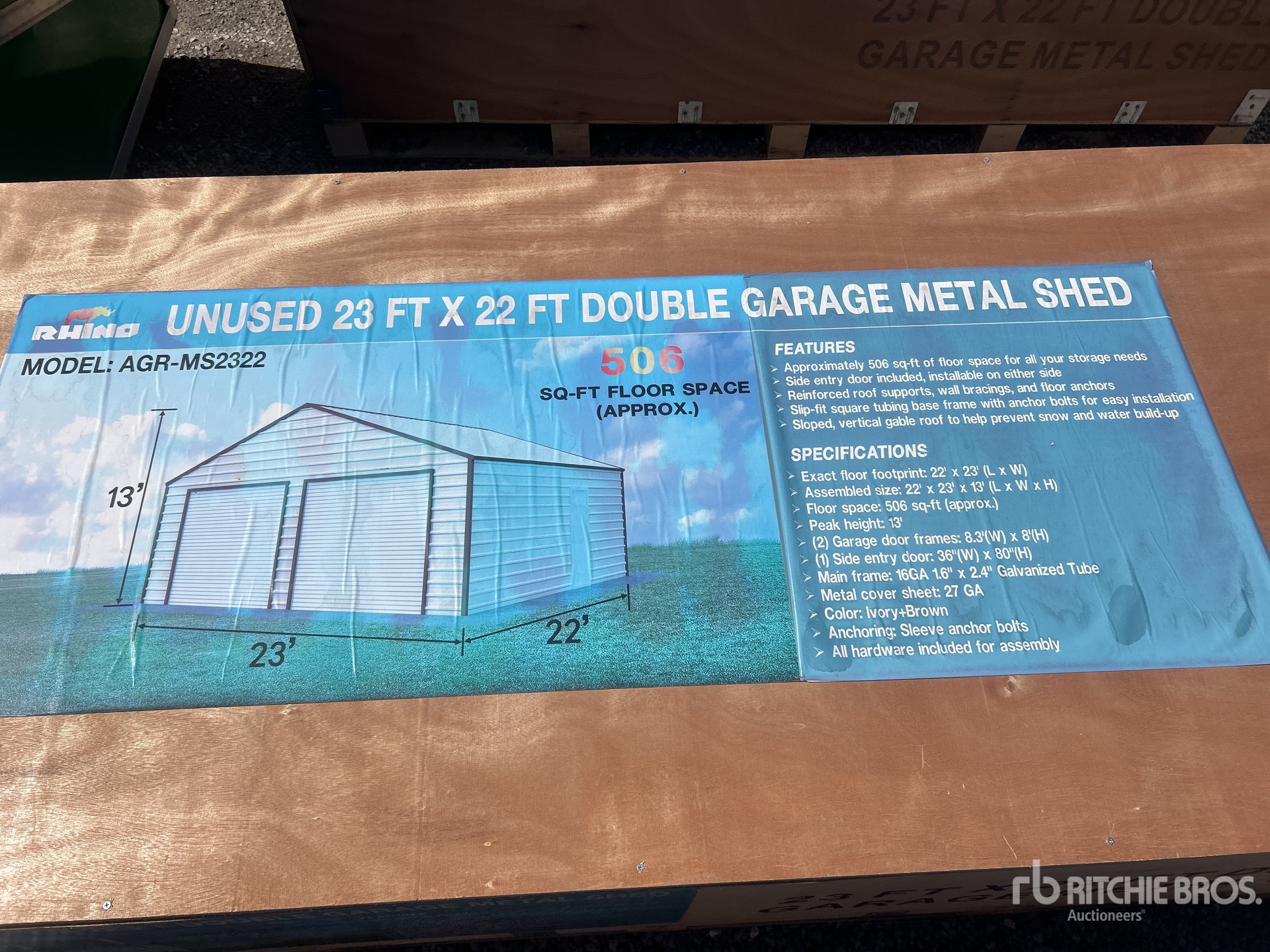 2025 AGR-MS2322 23 ft x 22 ft Double Garage Metal Edificio de almacenaje (Unused)