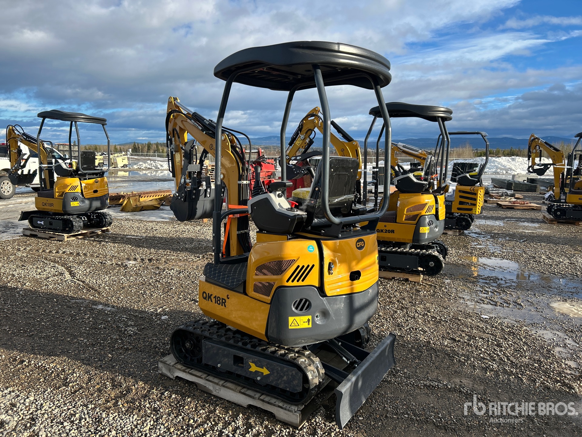 2025 US EPA Label, 2 ft 6 in Stick, Backfill Blade, 7 in Rubber Tracks, 14 in Digging Bucket, Hydraulic Thumb