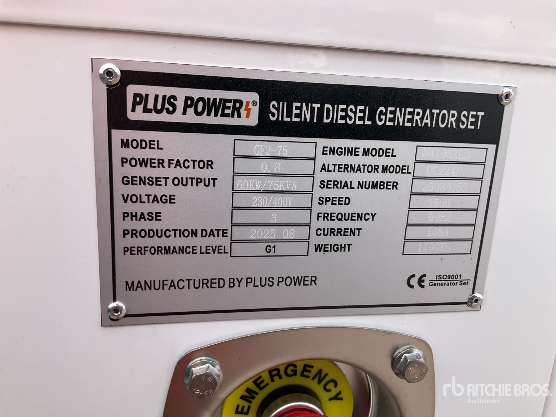 4 Cylinder Diesel Engine, /60 kW Rated 3 Phase Output, / 230 V / 400 V Rated Voltage, Sound Attenuated