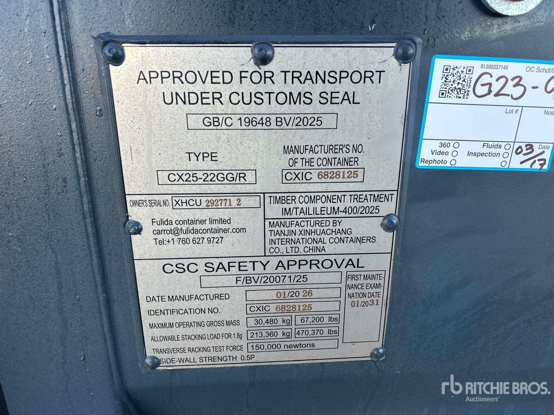 Un empleado cualificado de Ritchie Bros. ha recopilado información detallada del equipo y realizado las pruebas de funcionamiento de los componentes principales de este activo. Tú o tu representante también podéis inspeccionar cualquier artículo in situ durante los días de inspección de equipos indicados.