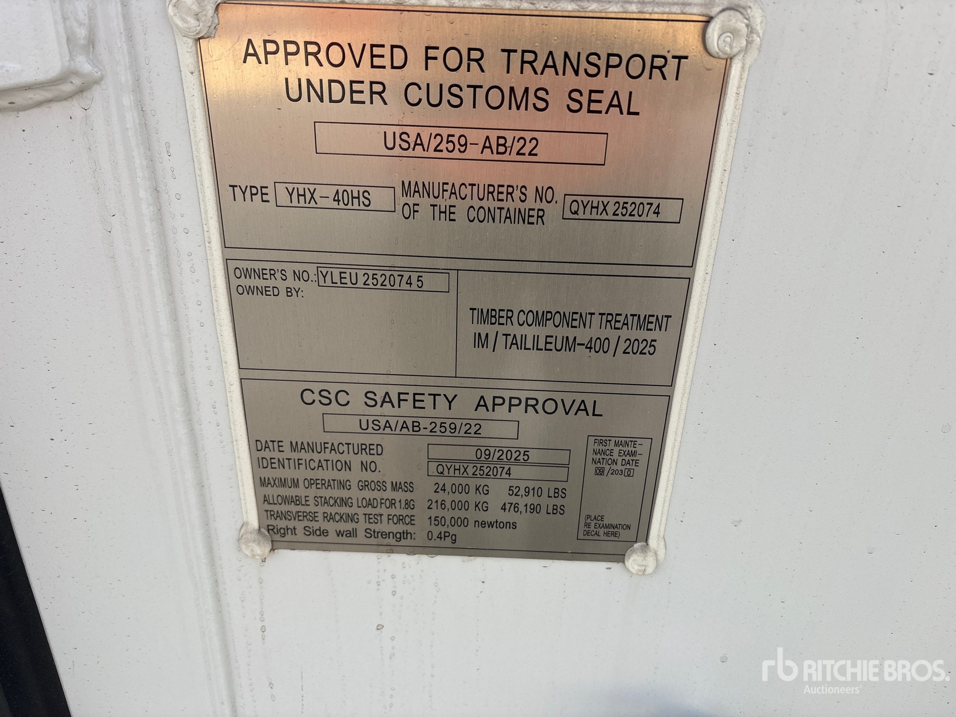 Un empleado cualificado de Ritchie Bros. ha recopilado información detallada del equipo y realizado las pruebas de funcionamiento de los componentes principales de este activo. Tú o tu representante también podéis inspeccionar cualquier artículo in situ durante los días de inspección de equipos indicados.
