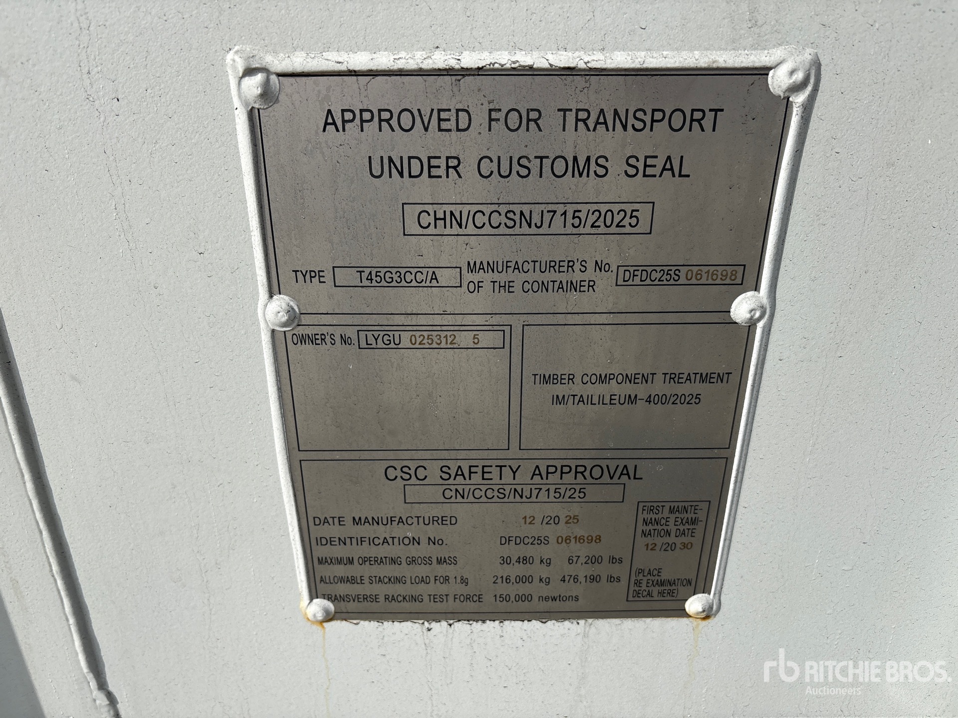 Un empleado cualificado de Ritchie Bros. ha recopilado información detallada del equipo y realizado las pruebas de funcionamiento de los componentes principales de este activo. Tú o tu representante también podéis inspeccionar cualquier artículo in situ durante los días de inspección de equipos indicados.