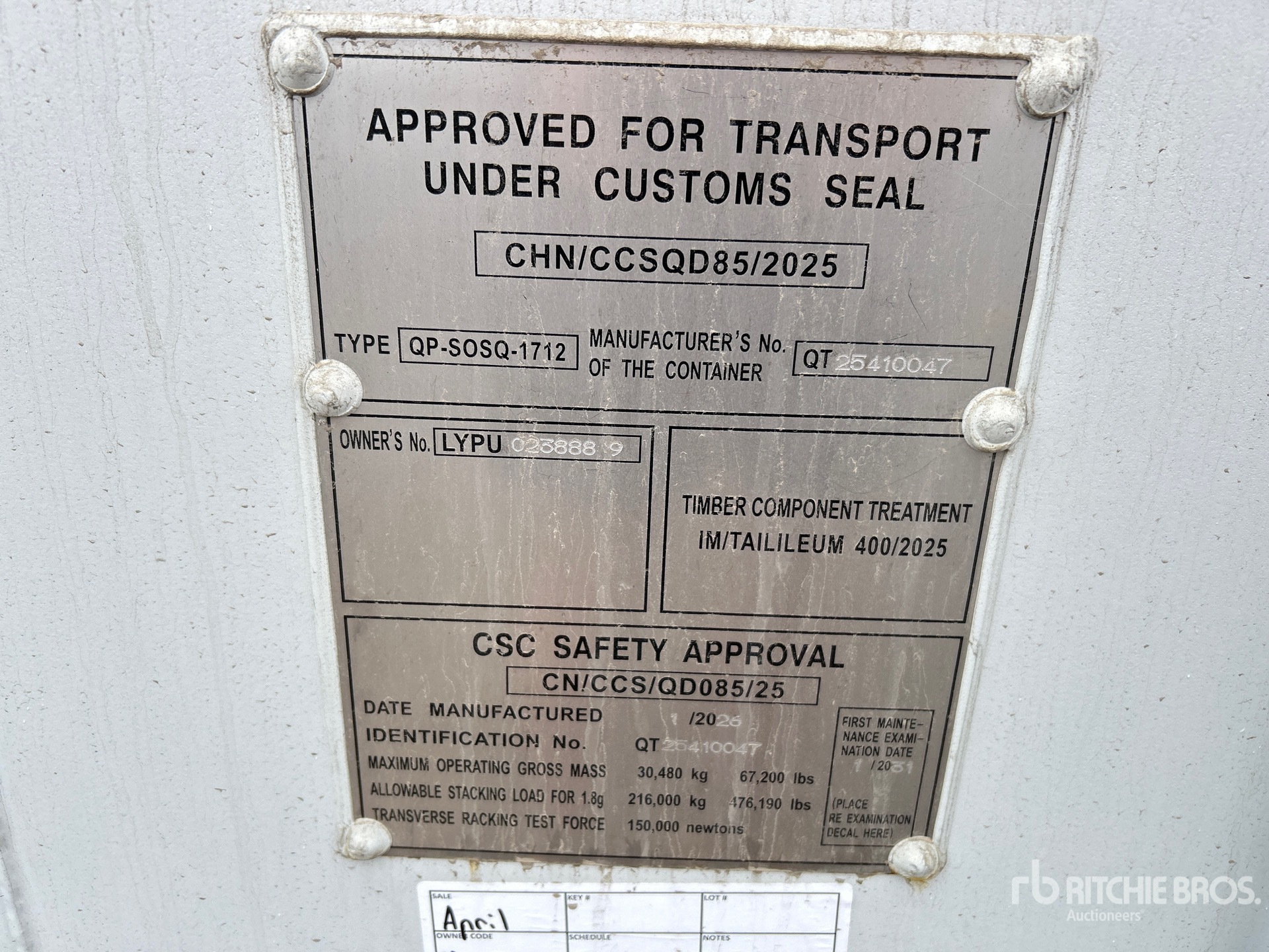 La información detallada del equipo tiene un ámbito limitado y Ritchie Bros. Auctioneers no ha inspeccionado ningún aspecto ni componente del equipo distinto de los expuestos expresamente aquí. A menos que se indique expresamente, no realizamos declaraciones ni ofrecemos garantías, expresas o implícitas, con respecto al equipo o a sus componentes, incluidas, entre otras, representaciones o garantías relativas a la funcionalidad, la conformidad o el cumplimiento de normativas de seguridad de autoridades u órganos reguladores competentes, así como tampoco sobre la aptitud para cualquier propósito particular o para fines de comercialización. Te aconsejamos que realices tu propia inspección detallada del equipo antes de la subasta.
