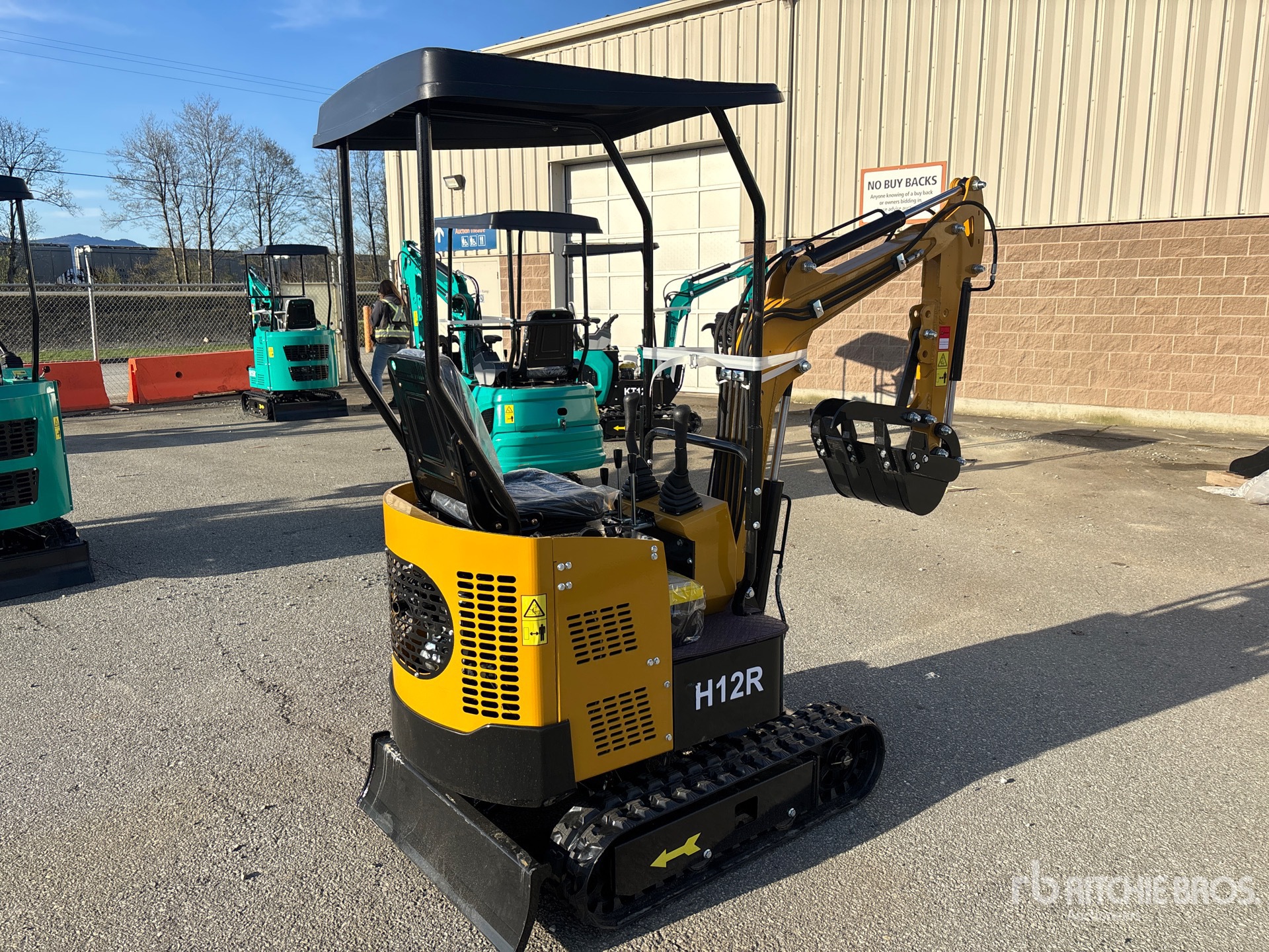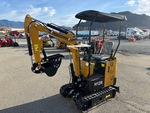 2026 US EPA Label, 2 ft 8 in Stick, Auxiliary Hydraulic Plumbing, Backfill Blade, 7 in Rubber Tracks, 14 in Digging Bucket, Manual Thumb, Item is new/unused