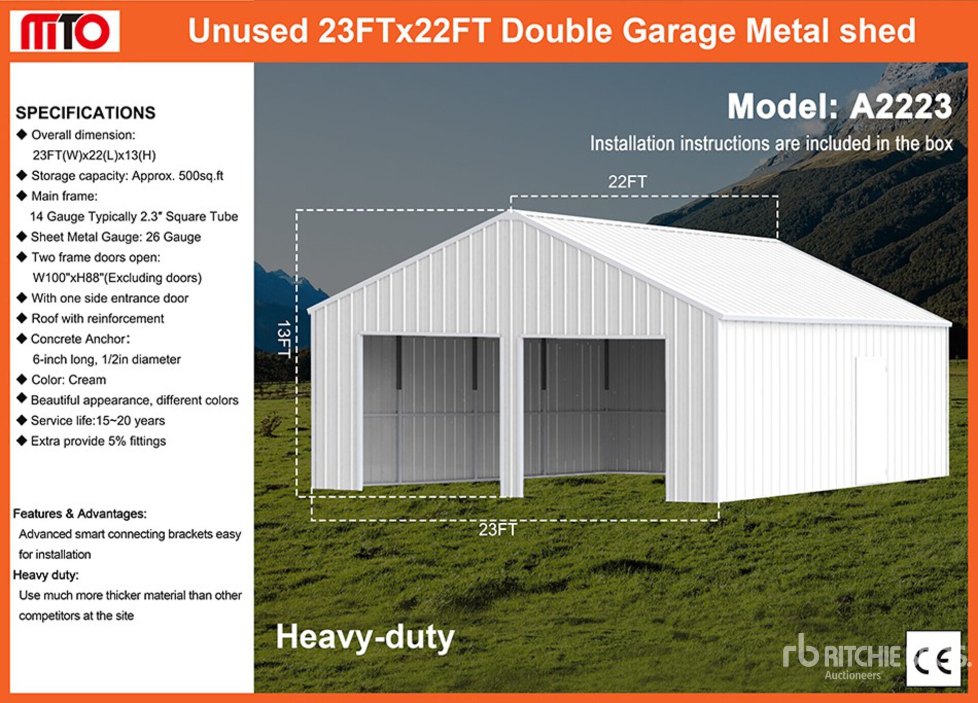 2026 MTO A2223 22 ft x 23 ft Double Garage Metal Edificio de almacenaje (Unused)