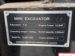 2025 US EPA Label, 2 ft 6 in Stick, Auxiliary Hydraulic Plumbing, Backfill Blade, 7 in Rubber Tracks, Manual Quick Coupler, 16 in Digging Bucket, Manual Thumb