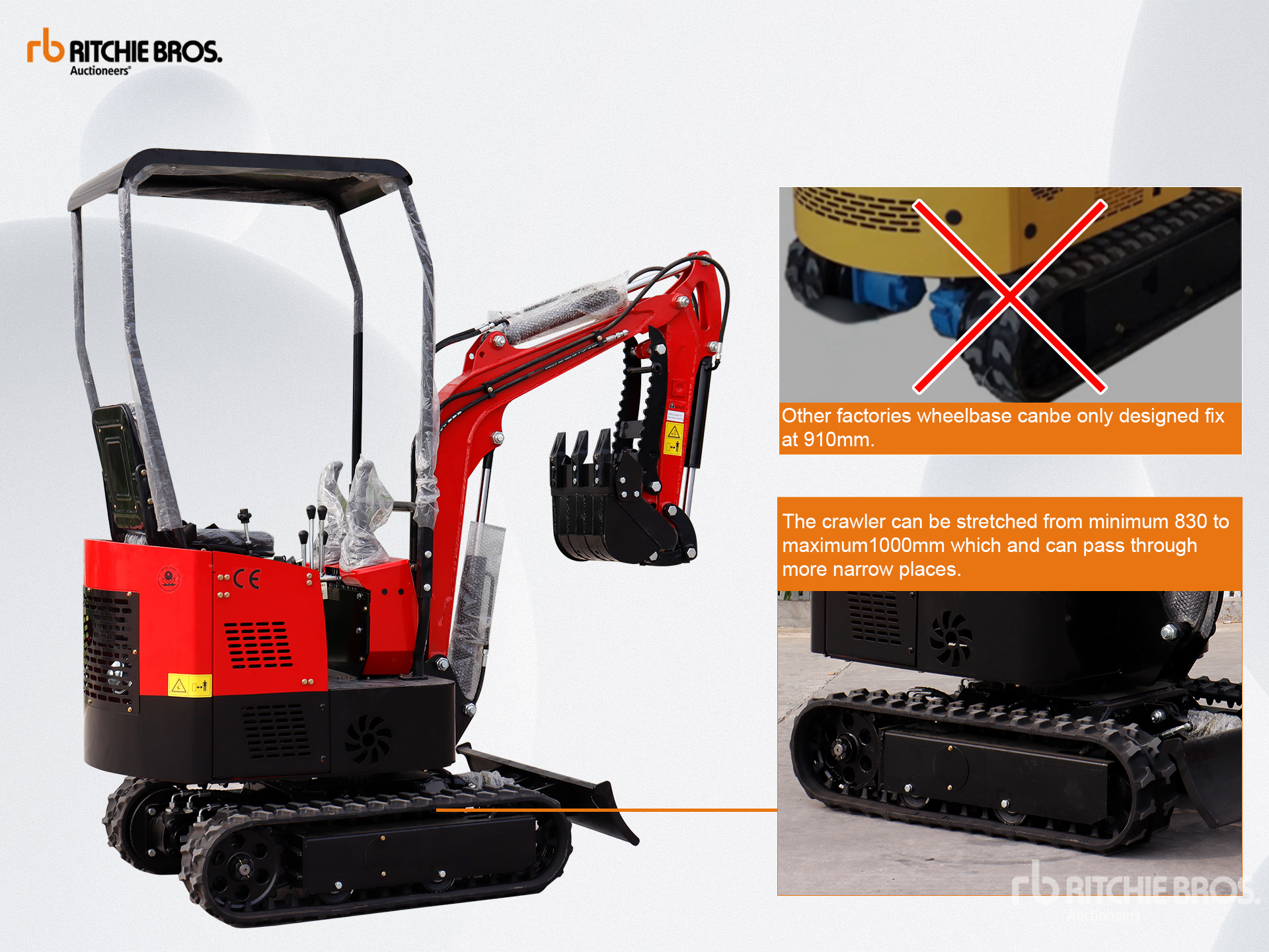 US EPA Label, 2 ft 7 in Stick, Auxiliary Hydraulic Plumbing, Backfill Blade, 7 in Rubber Tracks, 16 in Digging Bucket, Manual Thumb, Product images displayed are stock photos. Item is new/unused.