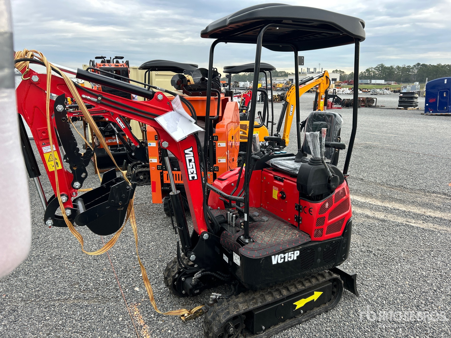 2025 US EPA Label, 2 ft 7 in Stick, Auxiliary Hydraulic Plumbing, Backfill Blade, 7 in Rubber Tracks, 16 in Digging Bucket, Manual Thumb