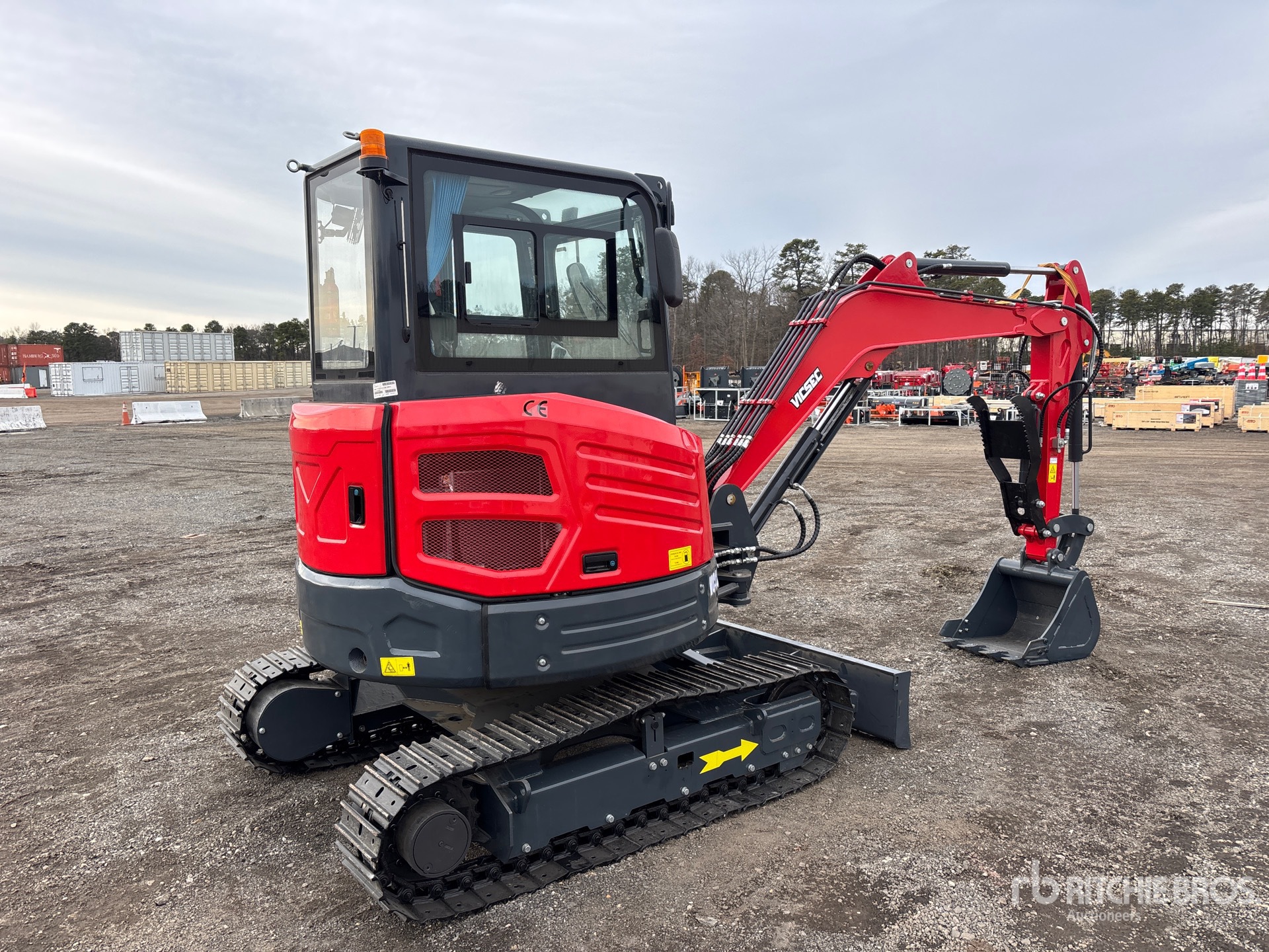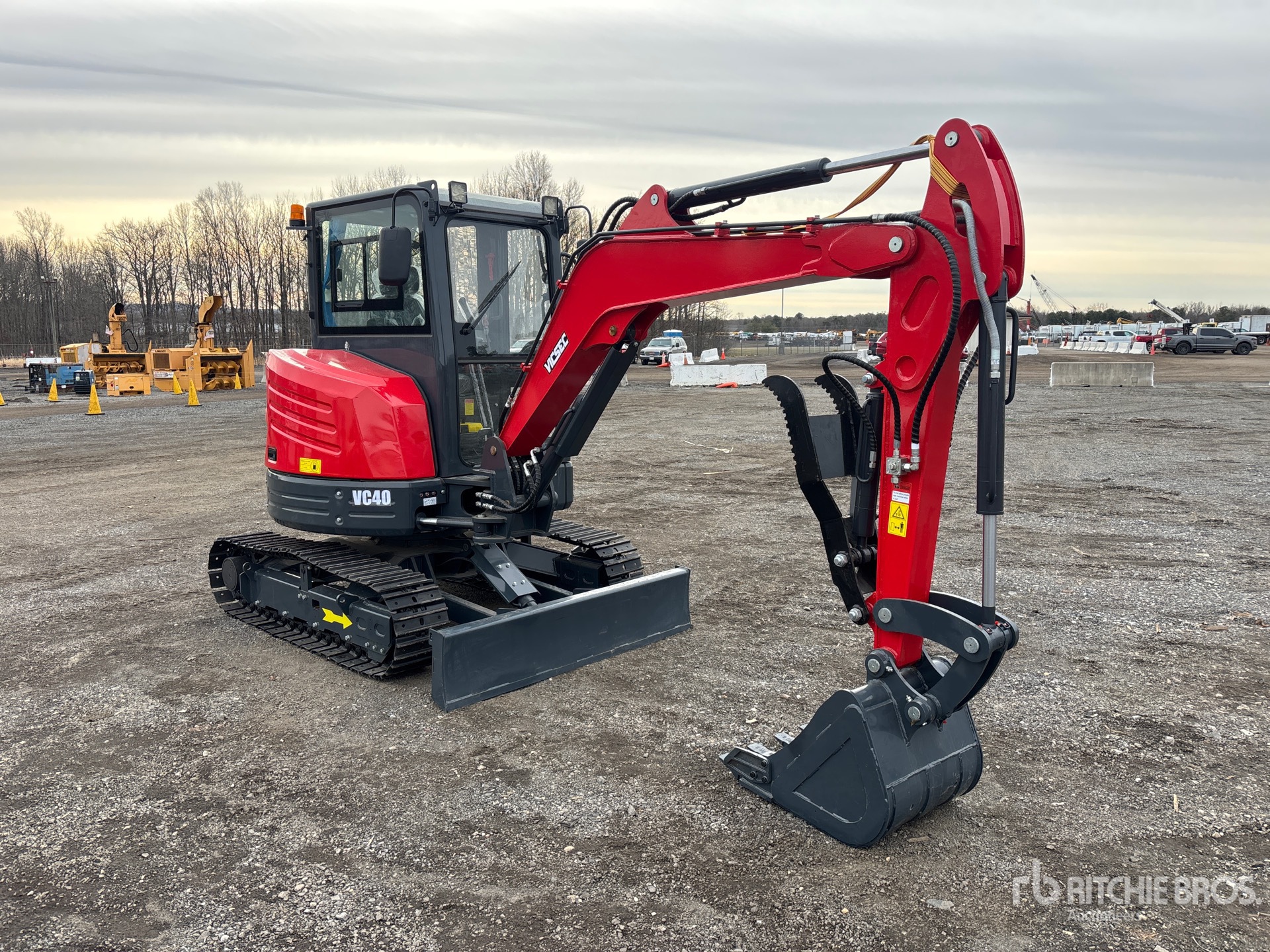 Enclosed Cab, 2025 US EPA Label, Swing Boom, 4 ft Stick, Auxiliary Hydraulic Plumbing, Backfill Blade, 12 in Double Grouser Track Shoes, 22 in Digging Bucket, Hydraulic Thumb
