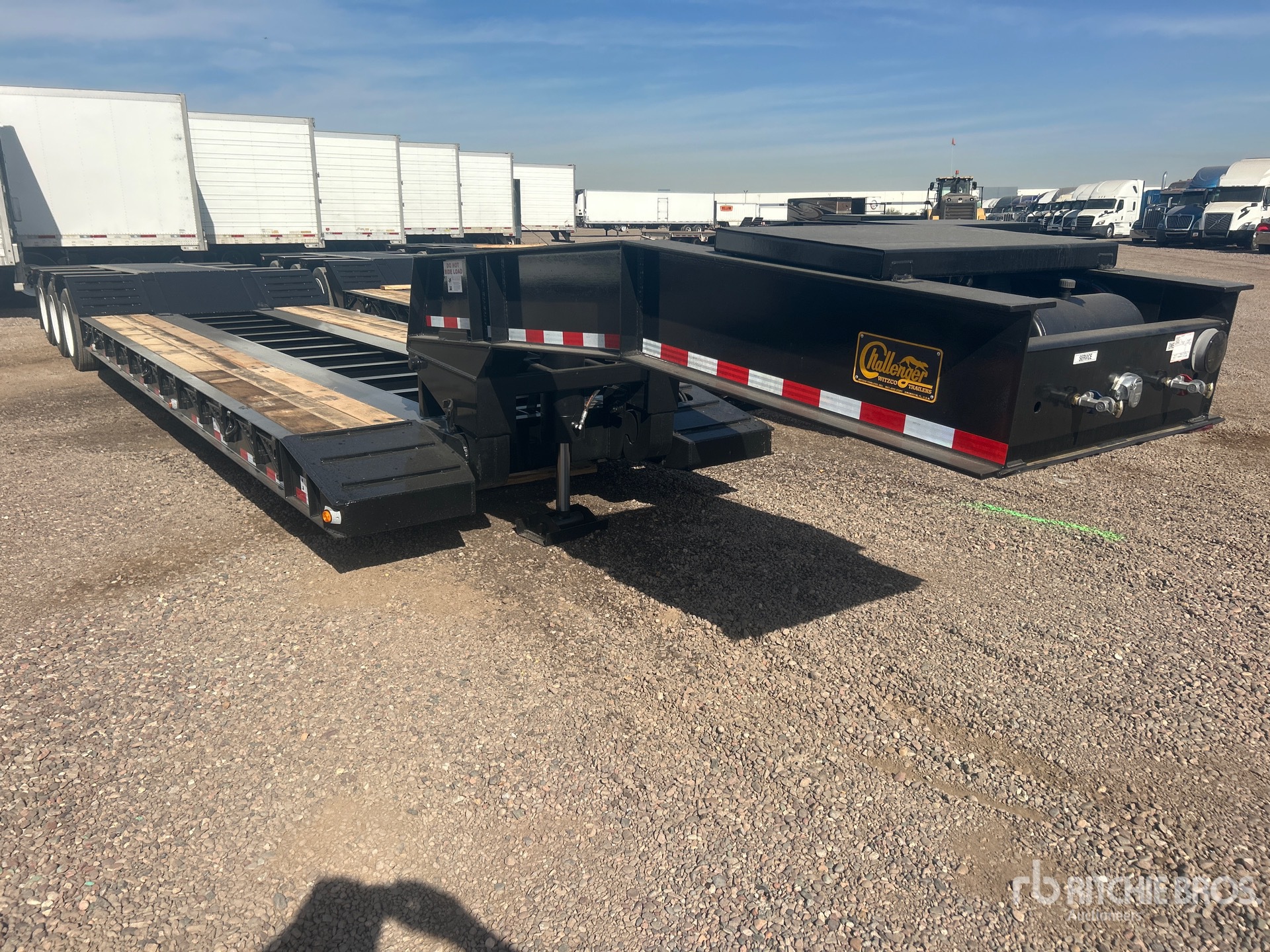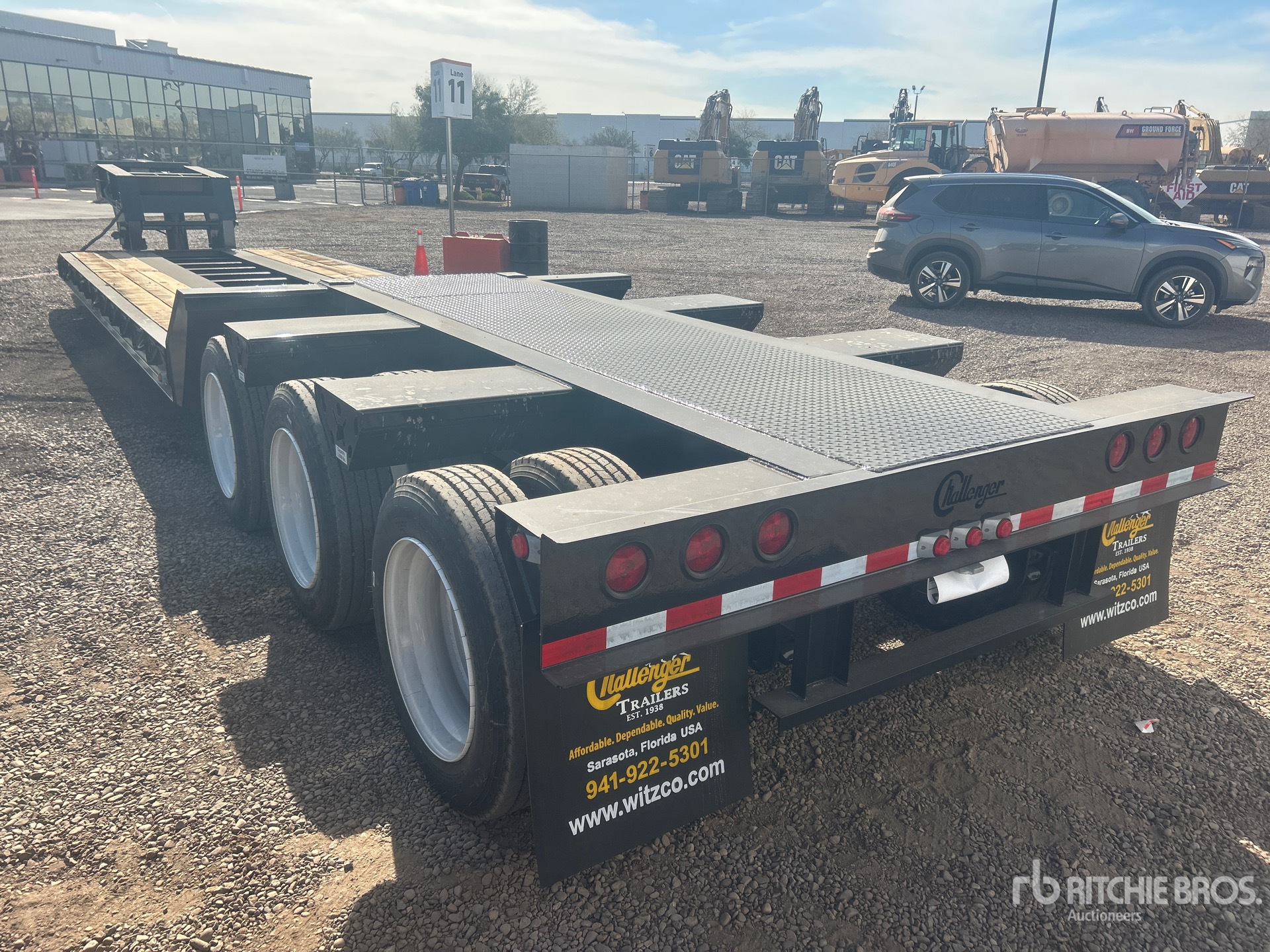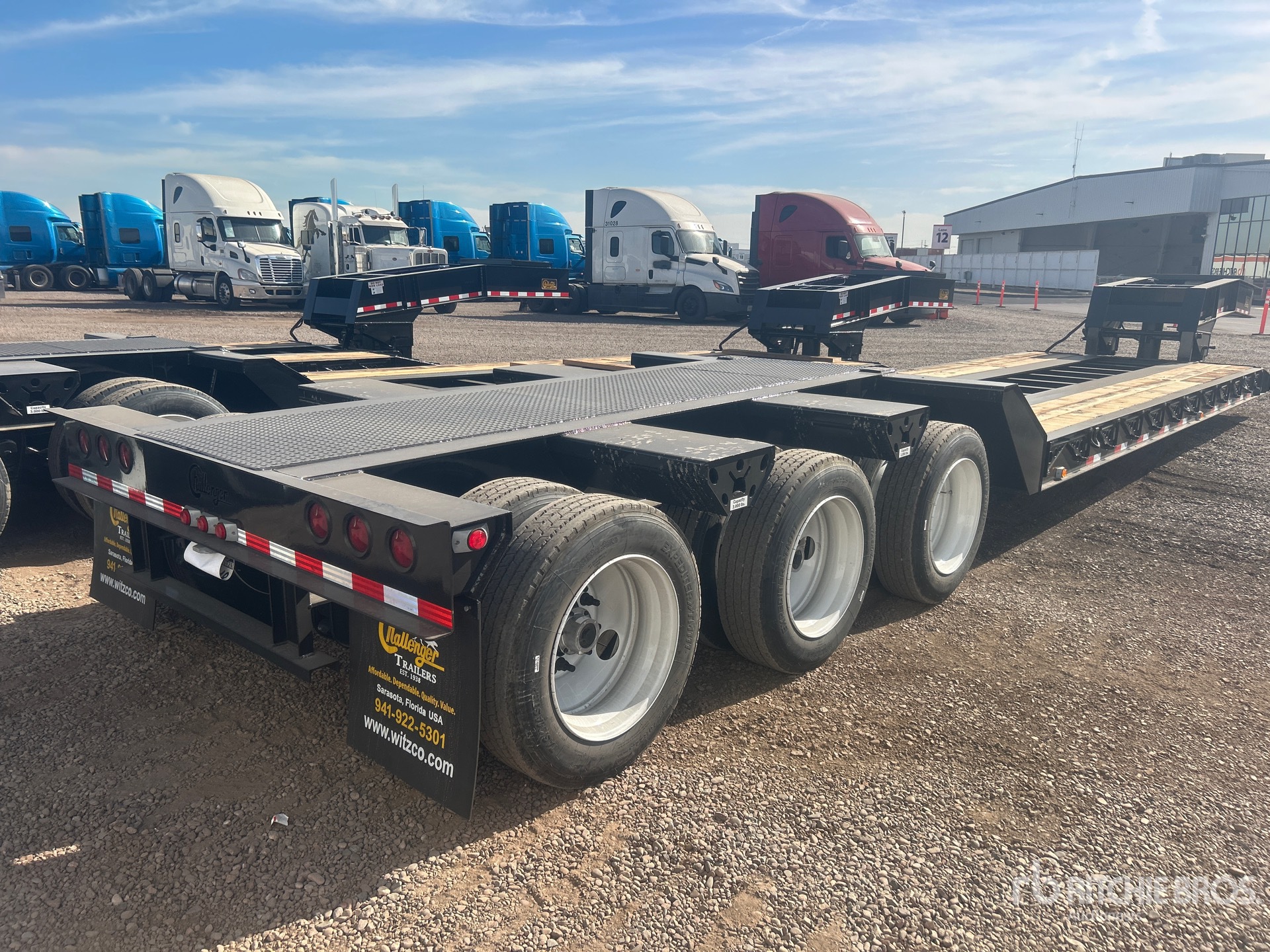 Located in Lane 11 Spot 1, 122540 lb GVWR, Mechanical Removable Gooseneck, 22 ft 4 in x 102 in Main Deck, Folding Side Extensions, Spring Suspension, Gasoline Driven Self Contained Hydraulic System