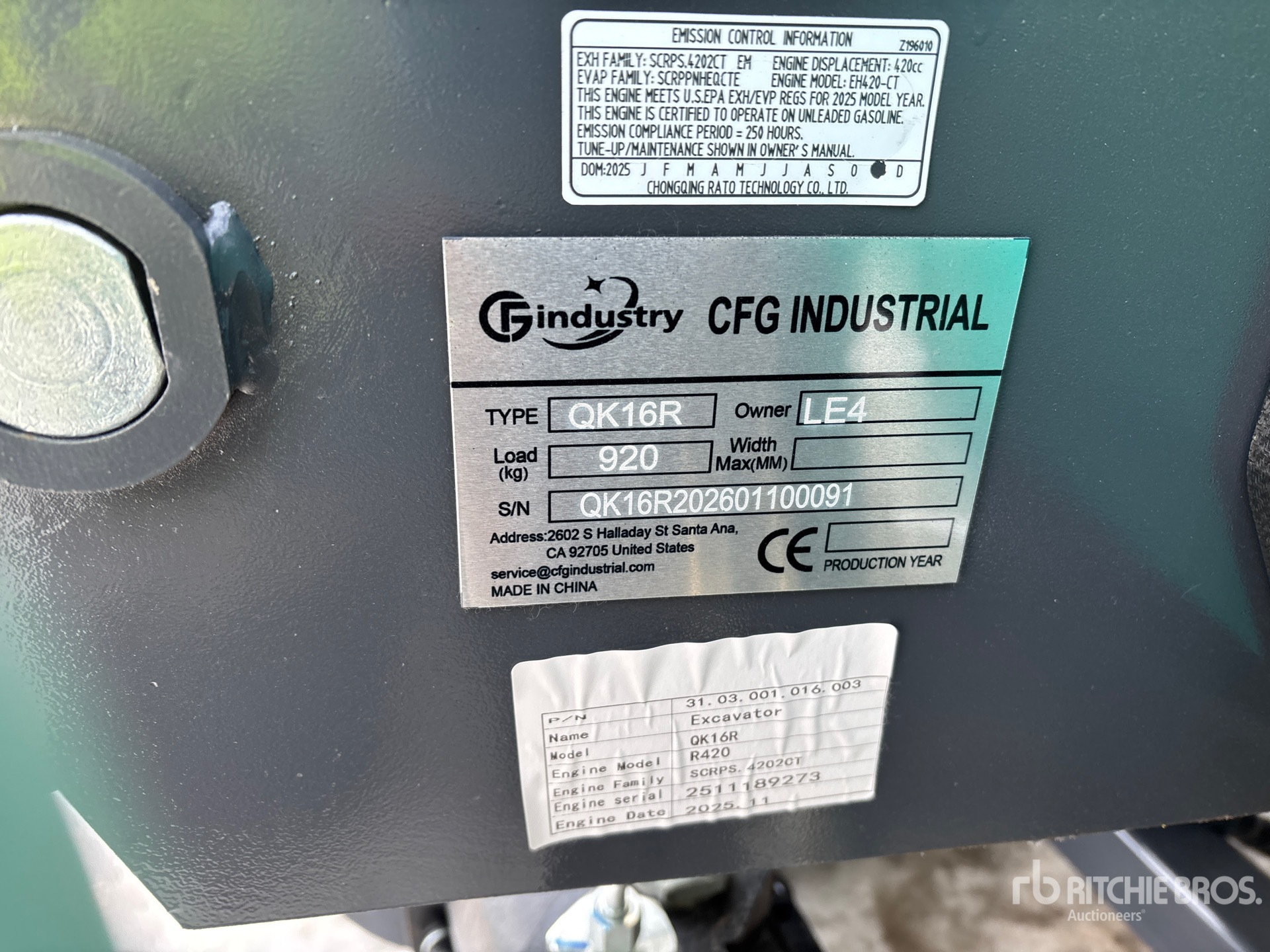 2025 US EPA Label, 2 ft 7 in Stick, Backfill Blade, 7 in Rubber Tracks, 16 in Digging Bucket, Hydraulic Thumb