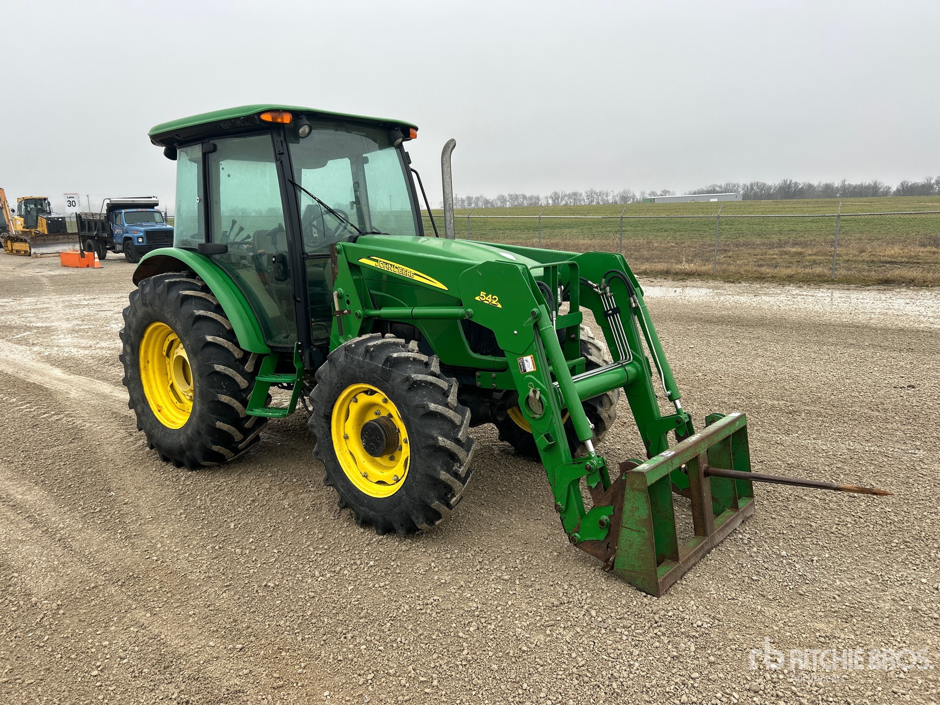 Enclosed Cab, Air Conditioner, Differential Lock, 12 Forward 12 Reverse, John Deere 542 Loader w/Joystick, Bale Fork, 3 Rear Remotes, Exterior 3-Point Hitch Controls, 540 PTO, 3-Point Hitch, Drawbar, 12.4x24 Front Tires, 18.4x30 Rear Tires, Rear Wheel Weights