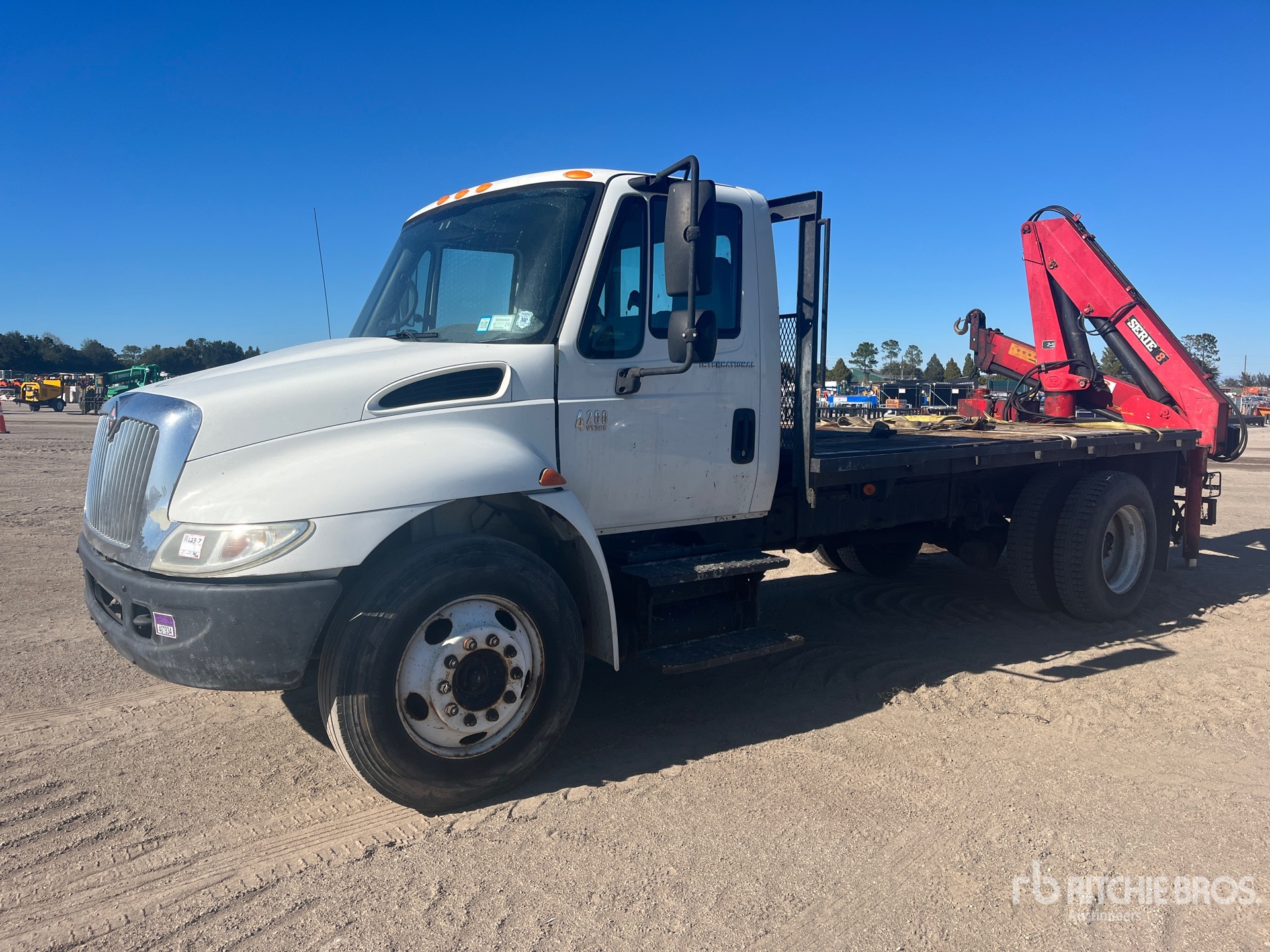 Navistar VT365 6.0 L Diesel Engine, US EPA Label, 8572 Engine hrs, 6-Speed Manual Transmission, 10R22.5, Spring Suspension, 190 in Wheelbase, PTO, 7 m - 11 m 5 Section Boom, Out and Down Outriggers, 13 ft 6 in x 96 in Bed