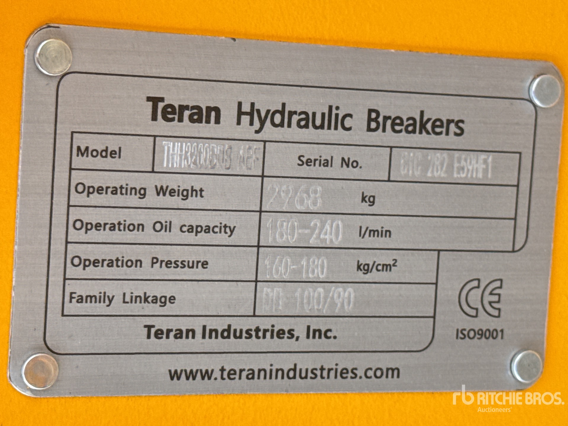 508 mm Center of Pin Boss to Center of Pin Boss, 381 mm Inside to Inside Pin Boss Spacing, NEW ABF System (Anti-Blank Firing) For Cat 330D, 336D and all 32-42 Ton Excavators - With Auto - Lubrication Pre-Disposition. Box Type - All New Teran Hydraulic Hammers are supplied with: 1 Chisel Moil Point M Type, 2 Hoses, 1 Set Of N2 Nitrogen Charging Kit With N2 Bottle And Pressure Gauge, 1 Spare Seal Kit, Toil Box With Maintenance Tools And Operations Manual.