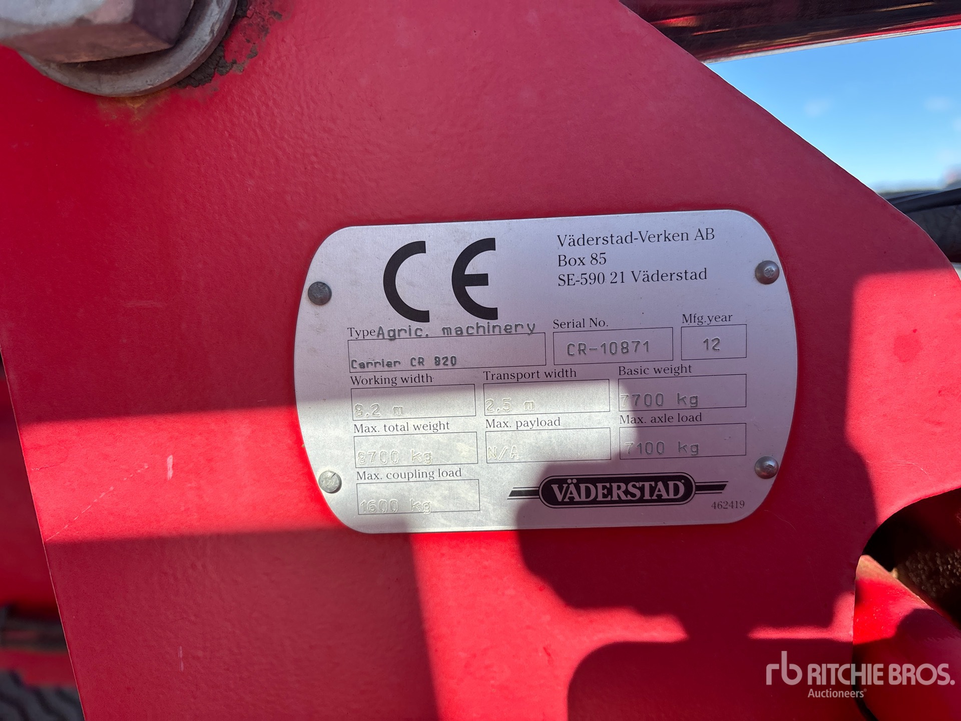 La información detallada del equipo tiene un ámbito limitado y Ritchie Bros. Auctioneers no ha inspeccionado ningún aspecto ni componente del equipo distinto de los expuestos expresamente aquí. A menos que se indique expresamente, no realizamos declaraciones ni ofrecemos garantías, expresas o implícitas, con respecto al equipo o a sus componentes, incluidas, entre otras, representaciones o garantías relativas a la funcionalidad, la conformidad o el cumplimiento de normativas de seguridad de autoridades u órganos reguladores competentes, así como tampoco sobre la aptitud para cualquier propósito particular o para fines de comercialización. Te aconsejamos que realices tu propia inspección detallada del equipo antes de la subasta.